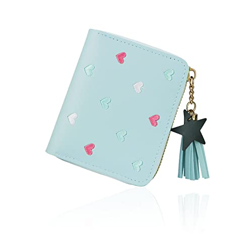Especificaciones: FuninCrea Cartera de Mujer con Colgante de Estrella, Monedero Mujer Pequeña Billetera Mujer de Cuero PU, Carteras Mujer Cartera Monedero Mujer con Cremallera y Patrón de Corazón Bordado (Azul)